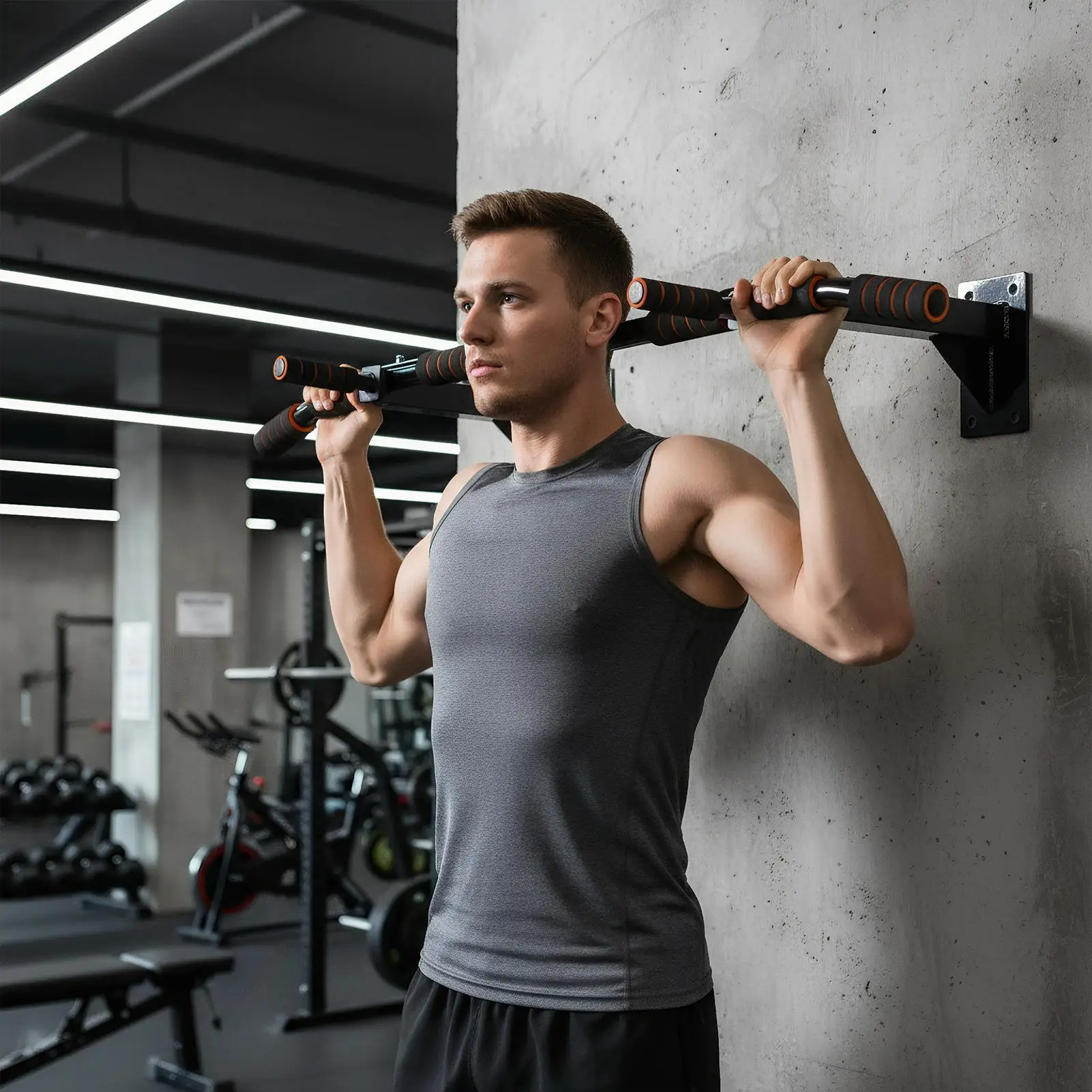 1.Secure Workout Solution: Featuring a reinforced structure, this wall mounted pull up bar ensures high-intensity safety with a 200kg weight capacity, allowing users to execute pull-ups, dips, and advanced fitness activities effectively and securely